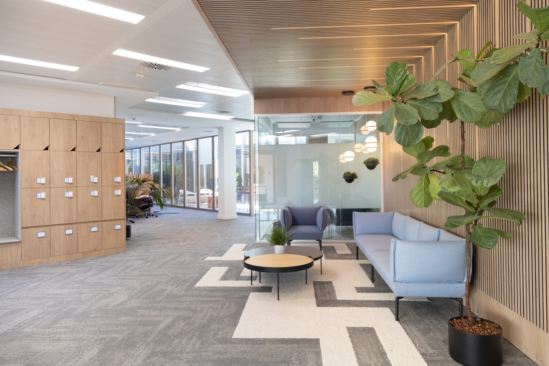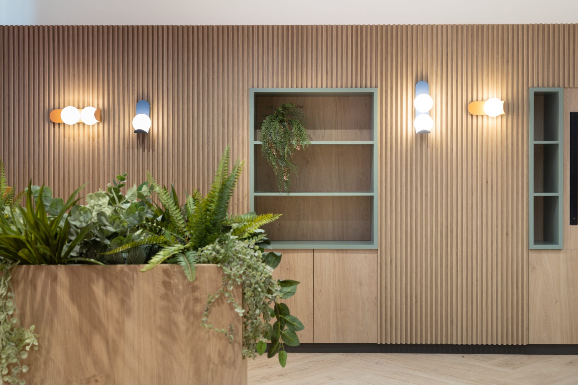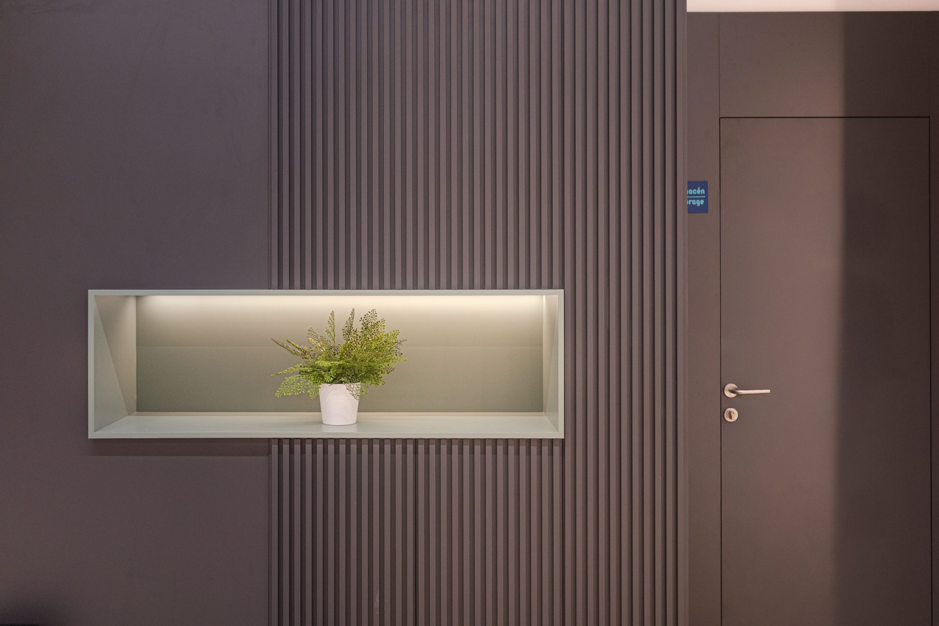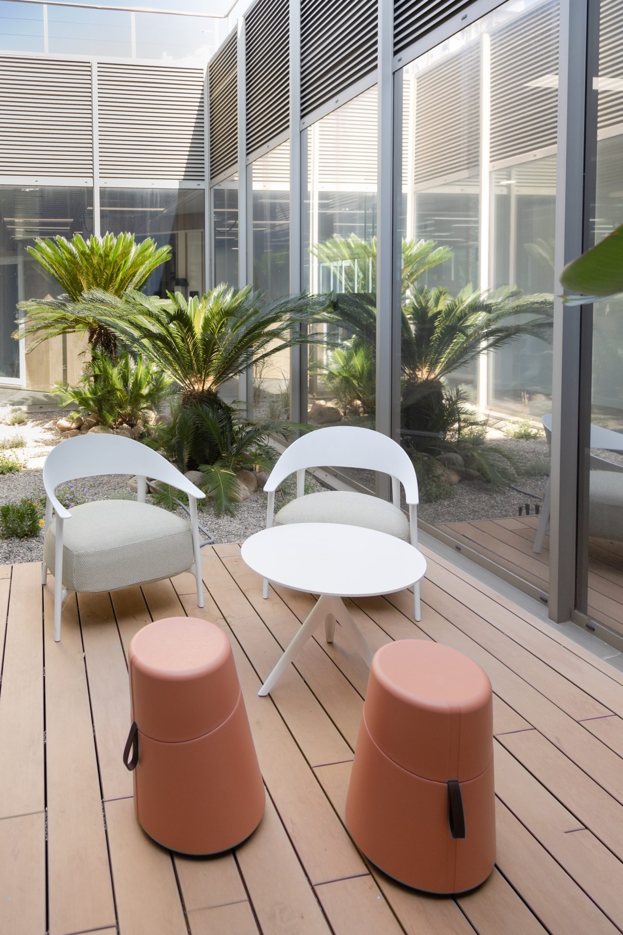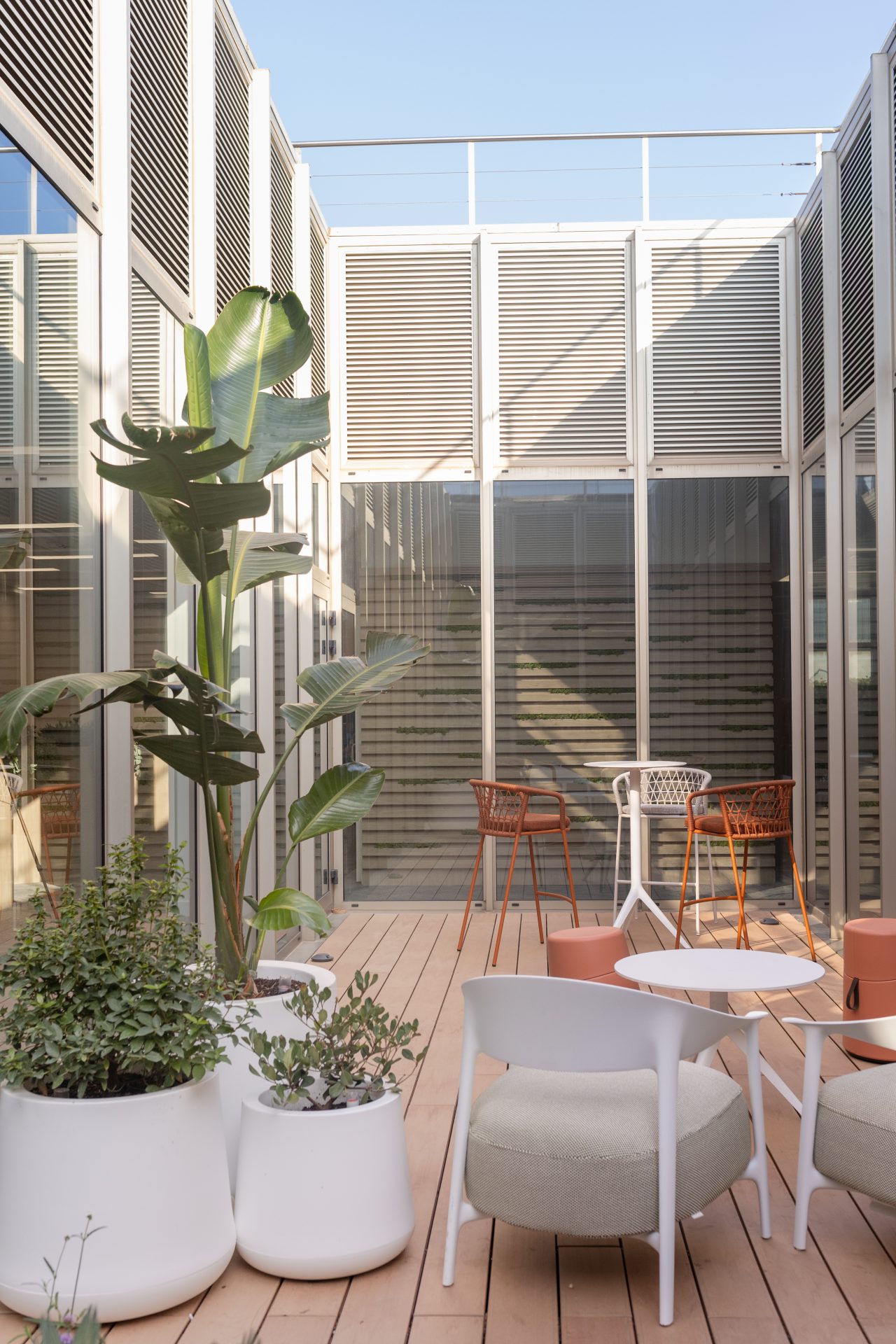 • Patios: Los patios existentes, antes desapercibidos, han sido transformados en elementos protagonistas. Hemos reintroducido la vegetación y hemos integrado mobiliario específico para convertirlos en áreas funcionales que maximizan la entrada de luz natural, creando un entorno de trabajo más saludable y conectado con el exterior.
