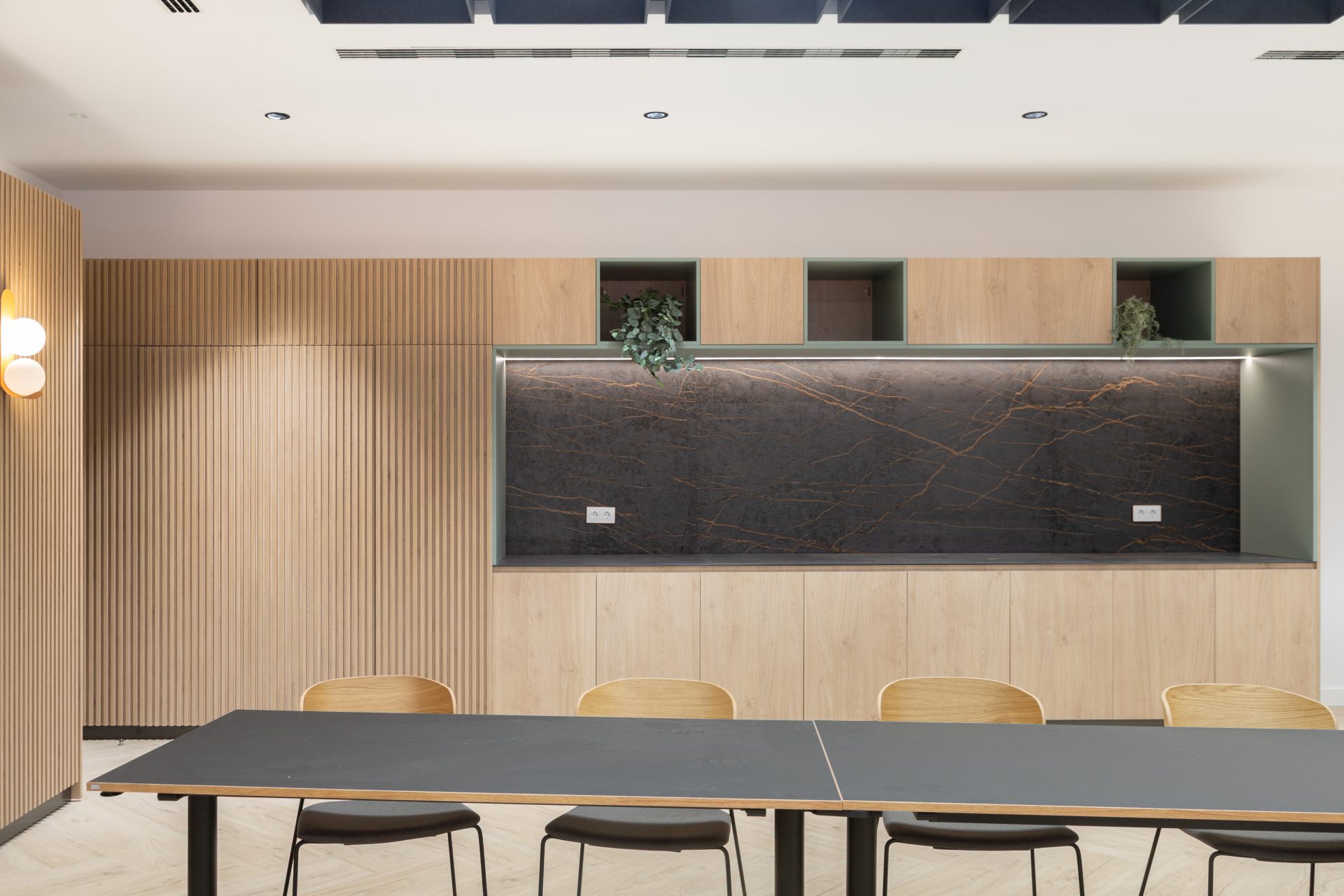 El éxito del proyecto reside en un riguroso trabajo de diseño que ha integrado consideraciones técnicas, acústicas y lumínicas. Se ha puesto un énfasis especial en el confort acústico y la optimización lumínica para garantizar un resultado que cumple con los más altos estándares y la exigencia del cliente Almirall.